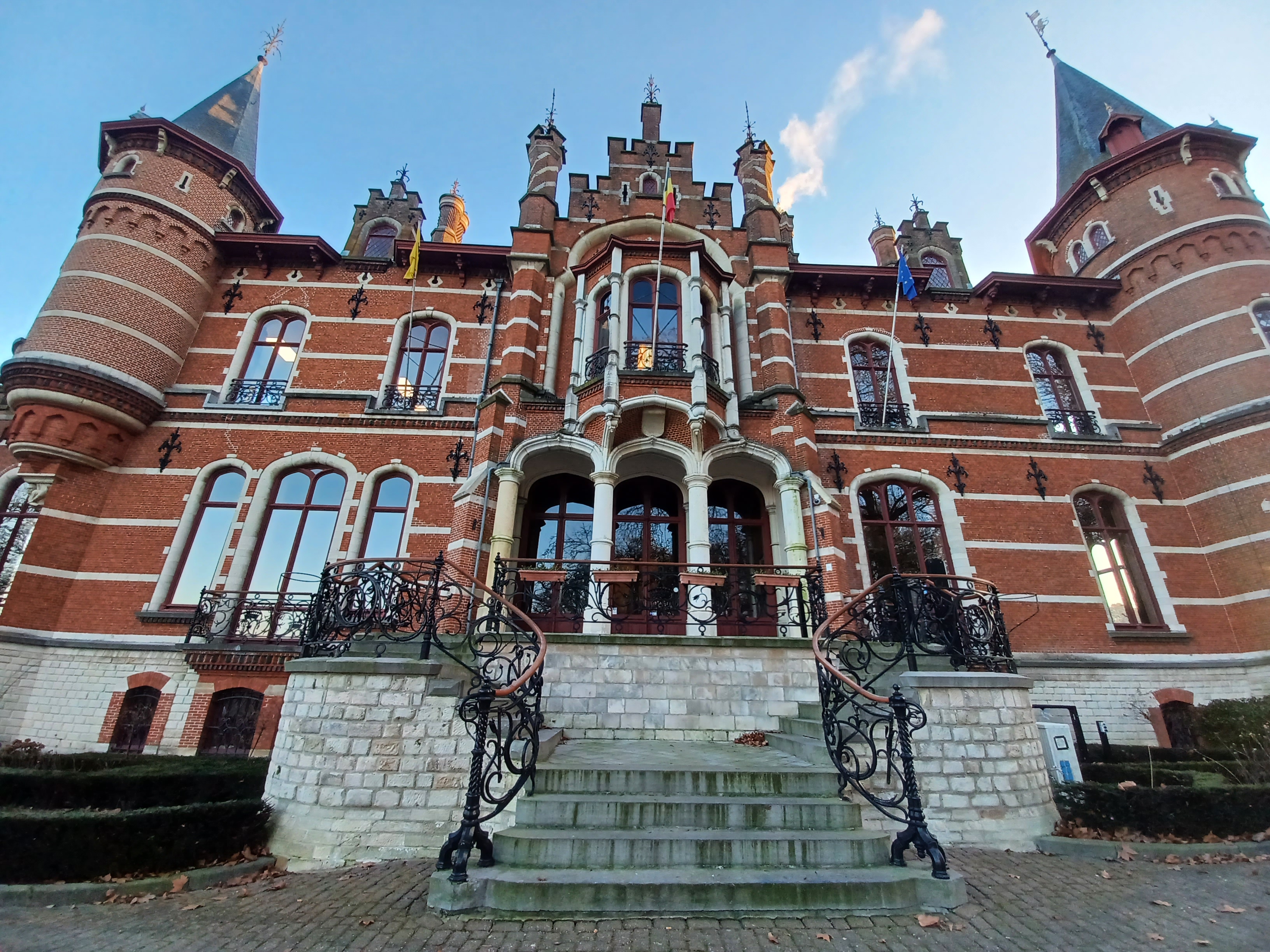 Een elegant kasteeltje uit de tijd van de romantiek, waarin neostijlen en natuurelementen vermengd zitten, met uitbundige daken, torens en schouwen.