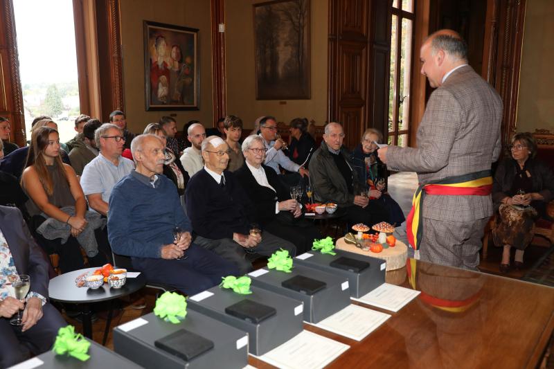Echtparen die 50, 60, 65, 70, 75 of 80 jaar getrouwd zijn of partners die 50 jaar wettelijk samenwonen, worden op het gemeentehuis uitgenodigd. Die recepties vinden gewoonlijk gegroepeerd plaats op het einde van elk kwartaal.