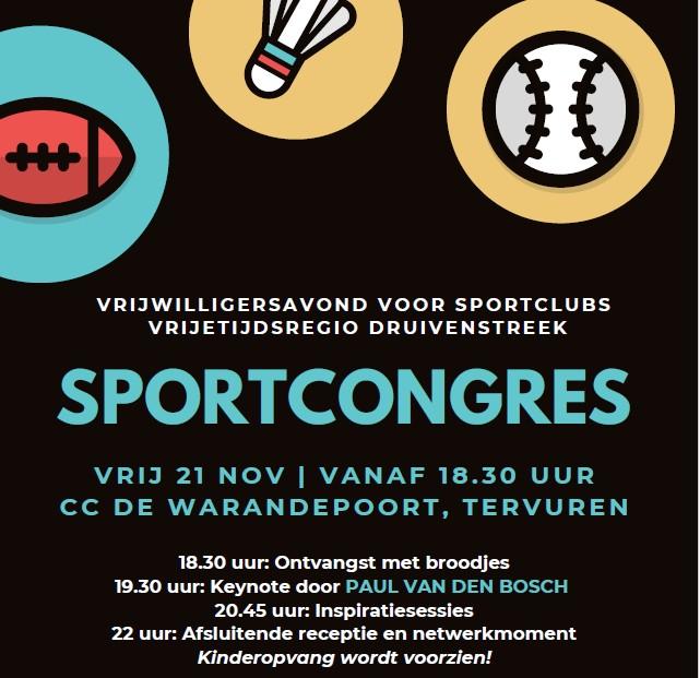 Ben jij actief als vrijwilliger in een sportclub? Dan ben je van harte welkom op dit sportcongres: een inspirerende avond vol ontmoetingen, nieuwe inzichten en praktische workshops om jouw club en trainingen een extra boost te geven.Neem gerust je kinderen mee, er is kinderopvang voorzien.