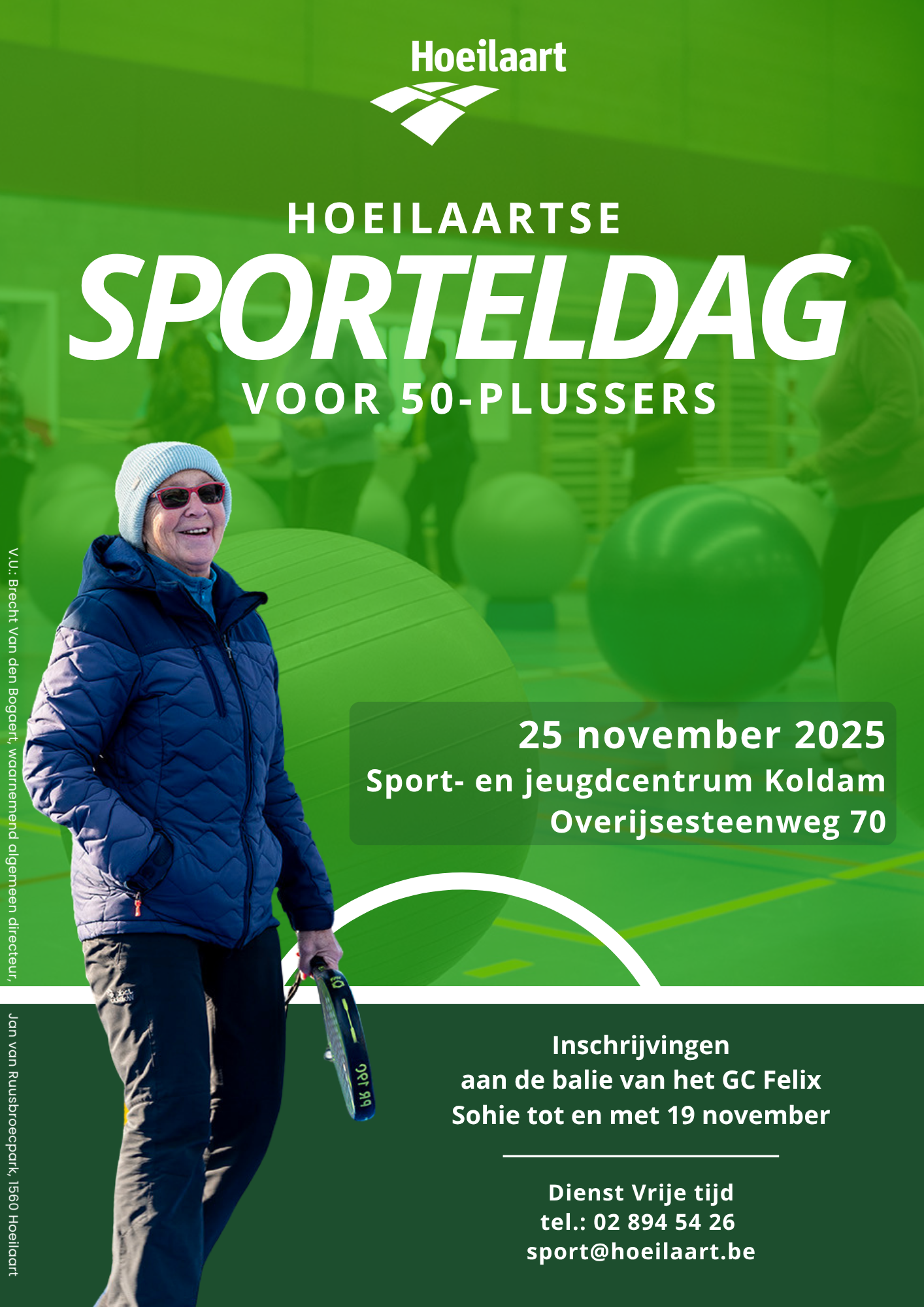 SJC Koldam is op dinsdag 25 november het decor voor de Hoeilaartse Sporteldag. 50-plussers zijn er welkom om te sporten en misschien wel een nieuwe sport te ontdekken. Op het programma staan activiteiten zoals curling, drums alive, badminton, linedance, wandelen, boogschieten en nog veel meer. Je bent welkom vanaf 9 uur.