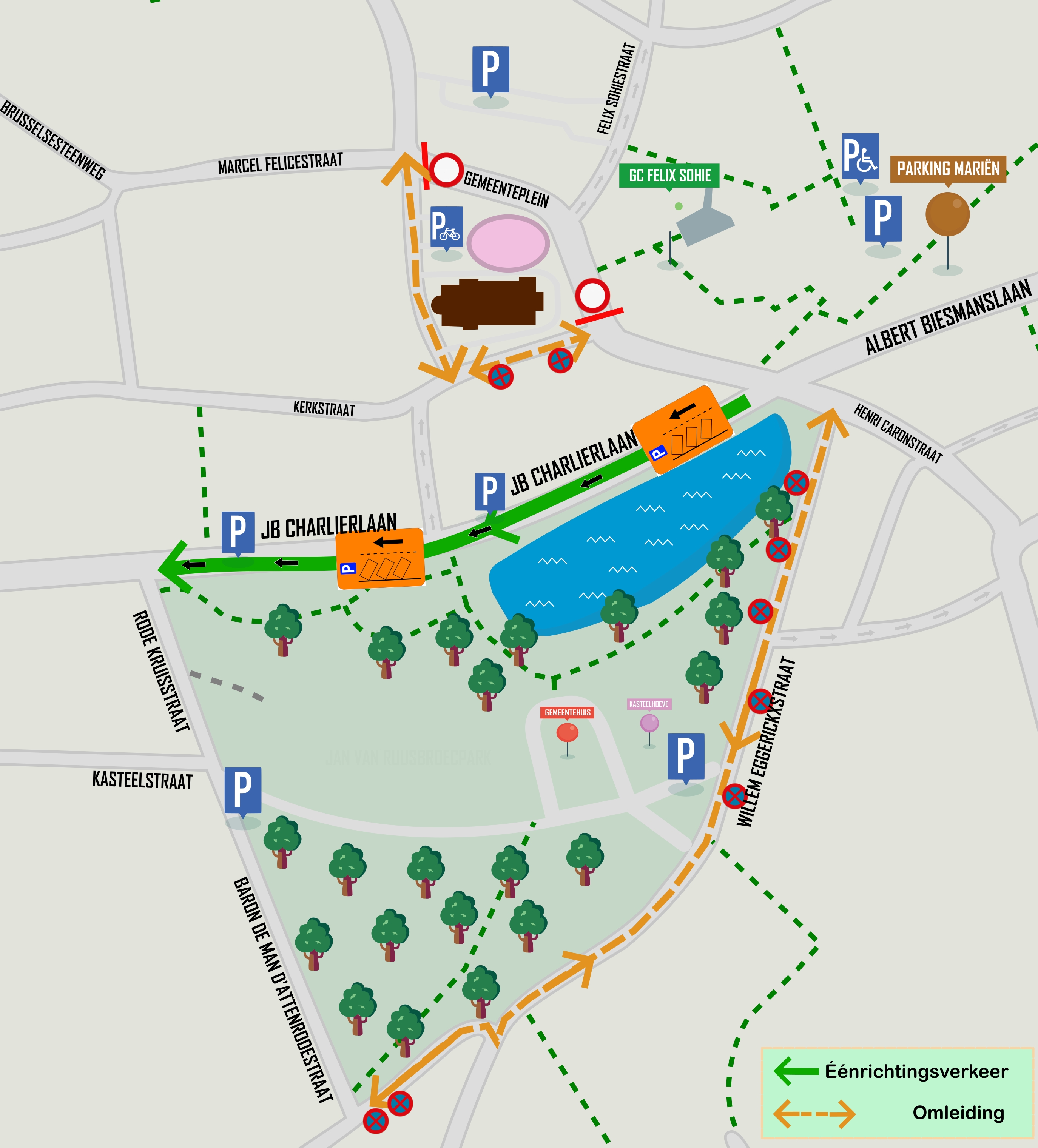 - Het Gemeenteplein wordt van 8 tot 18 uur afgesloten voor alle verkeer, uitgezonderd fietsers. De Felix Sohiestraat is hierdoor niet bereikbaar langs het Gemeenteplein.