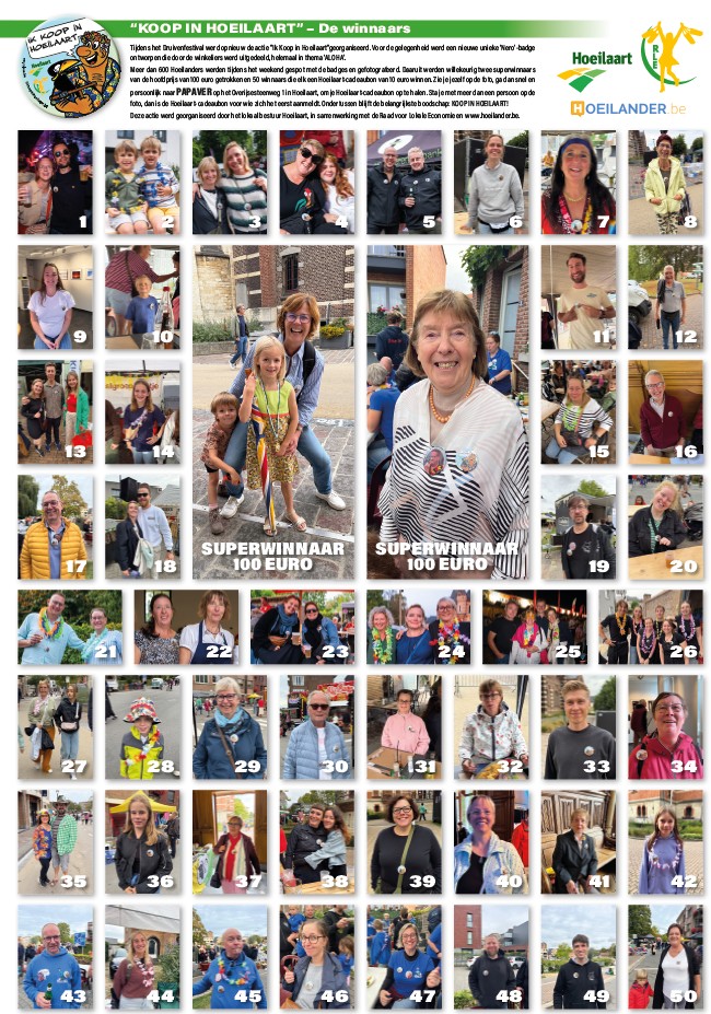 Ontdek hier de winnaars. Herken je jezelf op de foto? Ga dan persoonlijk langs bij Papaver (Overijsesteenweg 1, 1560 Hoeilaart) om je Hoeilaart-cadeaubon af te halen. Sta je met meer dan één persoon op de foto, dan gaat de bon naar wie zich het eerst aanmeldt.