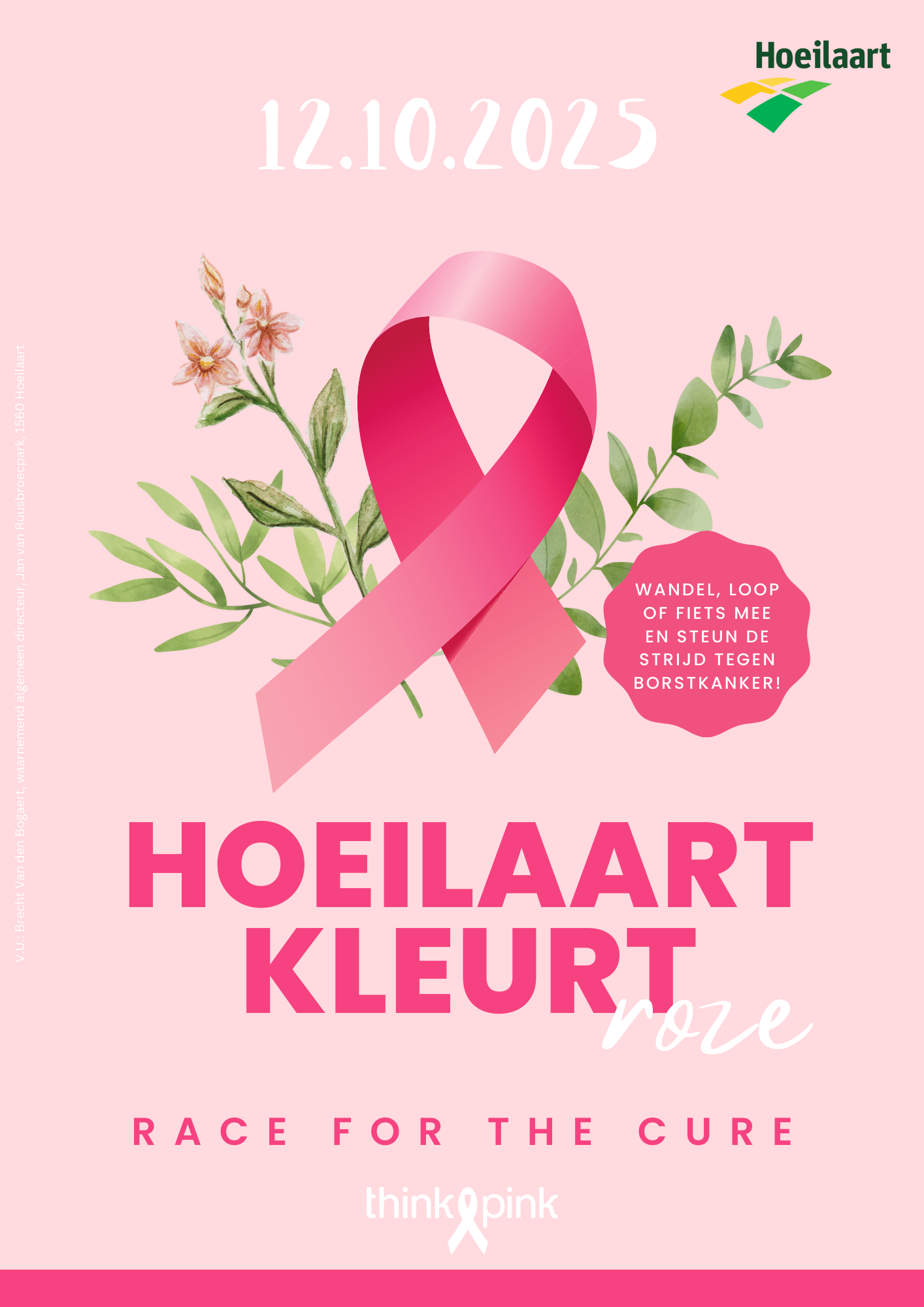 Op zondag 12 oktober kleurt onze gemeente roze ten voordele van Think Pink. De dag staat in teken van solidariteit en steun voor de strijd tegen borstkanker. Het evenement biedt voor ieder wat wils. Van wandel-, fiets- en looproutes door onze prachtige streek, tot kraampjes met gadgets en lokale handelaars die roze themaproducten aanbieden.